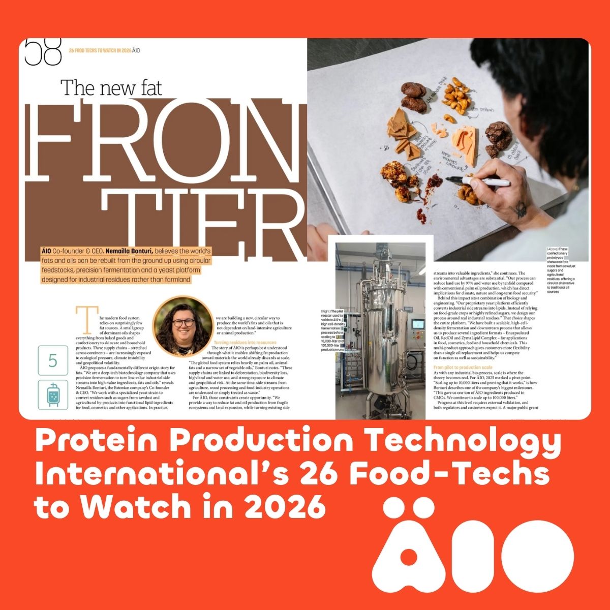 We’re proud to share that ÄIO has been included in Protein Production Technology International‘s Top 26 companies to watch, a curated list highlighting innovators shaping the future of food and ingredient production.